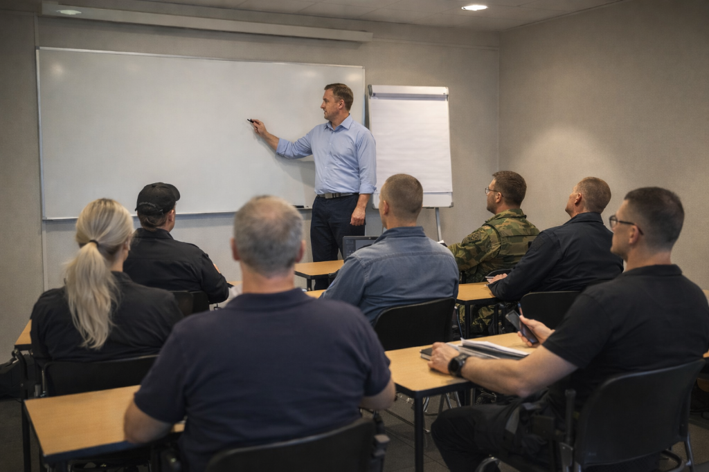 Oavsett om ni behöver grundläggande säkerhetsutbildning, specialiserad yrkesutbildning eller kontinuerlig kompetensutveckling, anpassar vi innehållet efter era specifika behov och verksamhet.